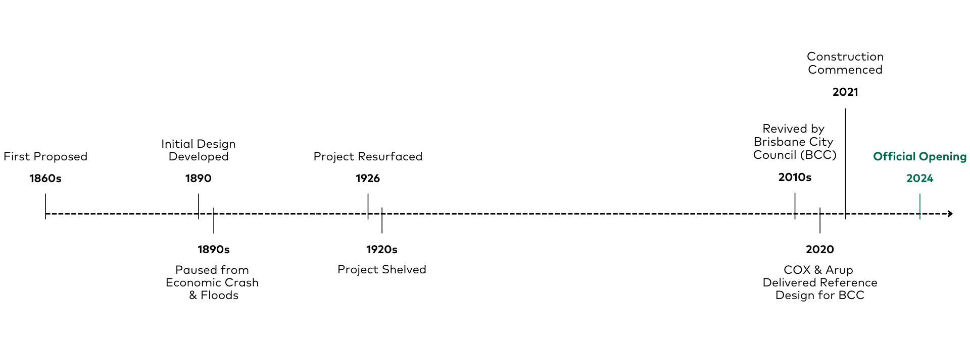 Timeline of the Kangaroo Point Bridge from Proposal to Completion