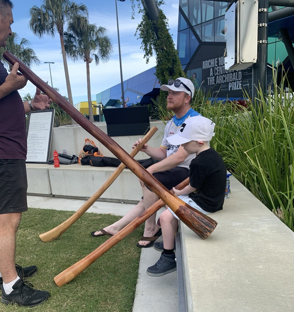 Ashley: I was born and raised west of Brisbane, on Yuggera, Jagera, and Ugarapul Country. I’m also connected through my grandfather and grandmother to Cherburg, Wakka Wakka peoples and K’gari, Butchulla peoples. Growing up, culture was all around me. I didn’t realise that wasn’t something everyone experienced. Now, I’m honoured to continue those practices and share them with others.