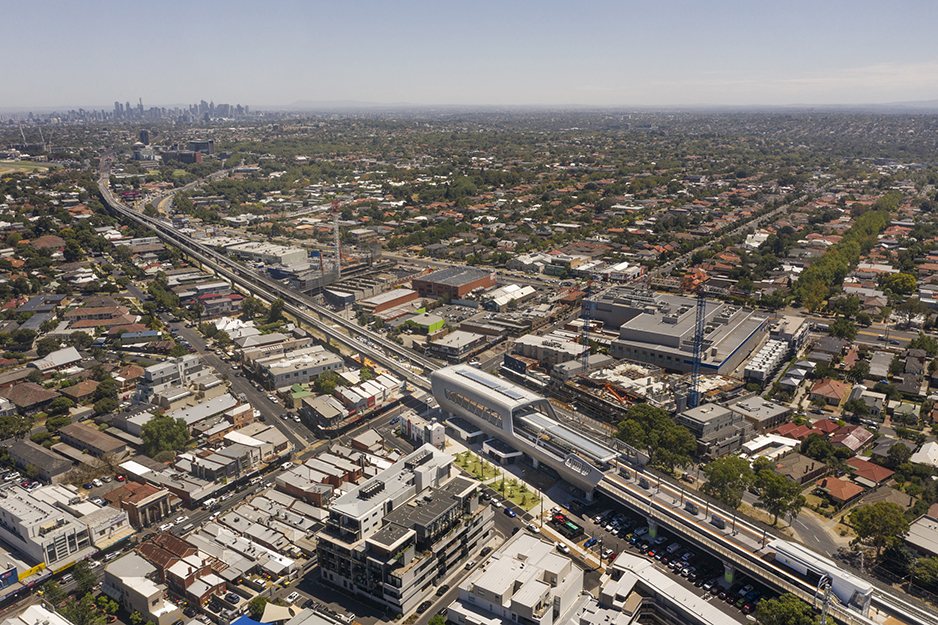 The Caulfield to Dandenong Level Crossing Removal (CTD) project comprised the replacement of nine dangerous rail level crossings with five elevated railway stations along one of Melbourne’s busiest transport corridors. By elevating the line and stations, this project presented an opportunity to transform an extensive tract of land within Melbourne’s metropolitan zone into a new linear park.
