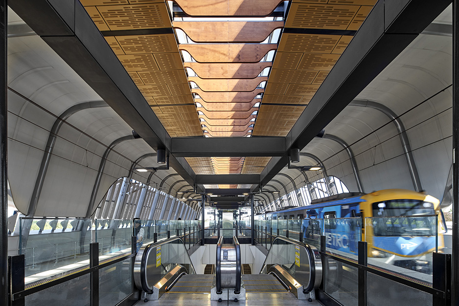 A very skilfull and accomplished project, all five stations have a consistent and distinct architectural form providing a sense of identity to the rail corridor and sense of connection between adjoining suburbs.
