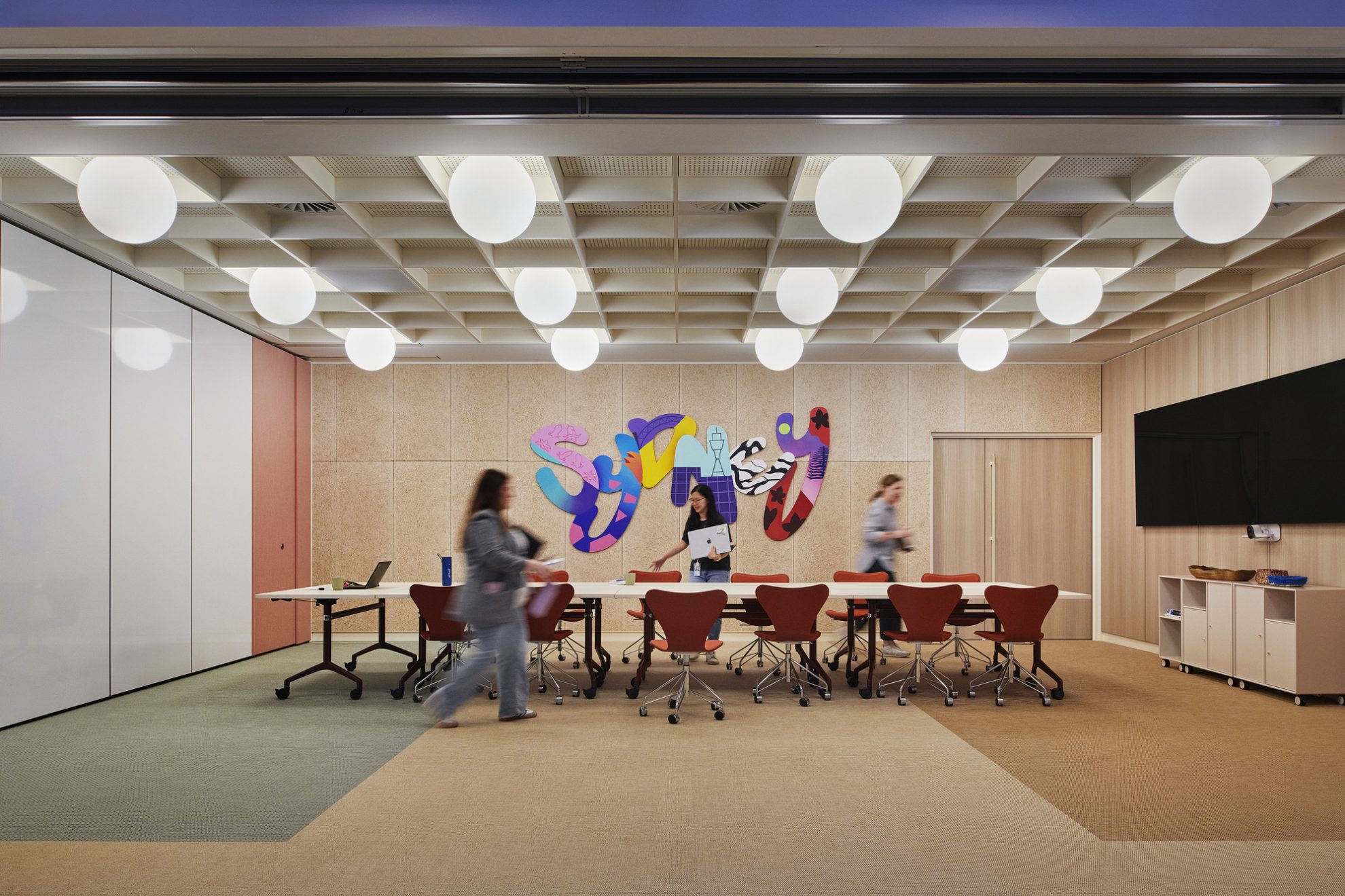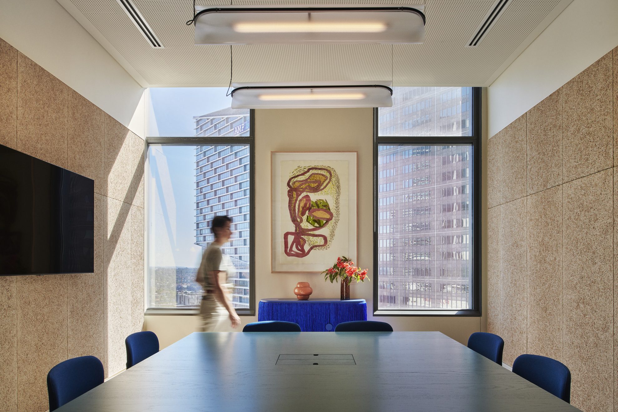 The design is rooted in Sydney yet reflects Intuit’s APAC presence. An art strategy by Art Pharmacy brings this to life: meeting rooms named after APAC countries, with artworks by APAC artists integrated throughout.